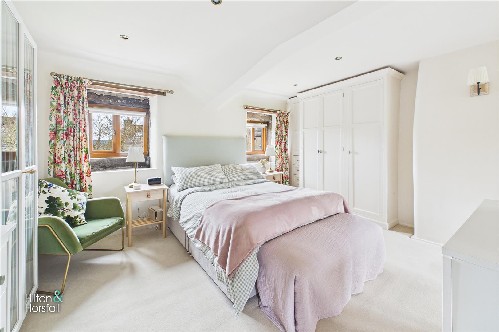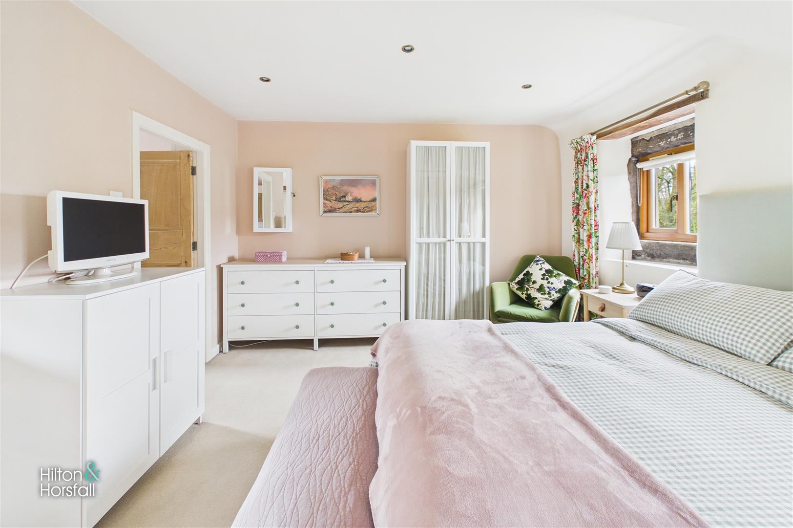 A generous and beautifully presented double bedroom offering ample space for freestanding furniture. The room benefits from recessed ceiling spotlights and three windows set within stone surrounds allowing plenty of natural light while enjoying pleasant outlooks. This comfortable principal bedroom also provides access through to a private ensuite shower room.