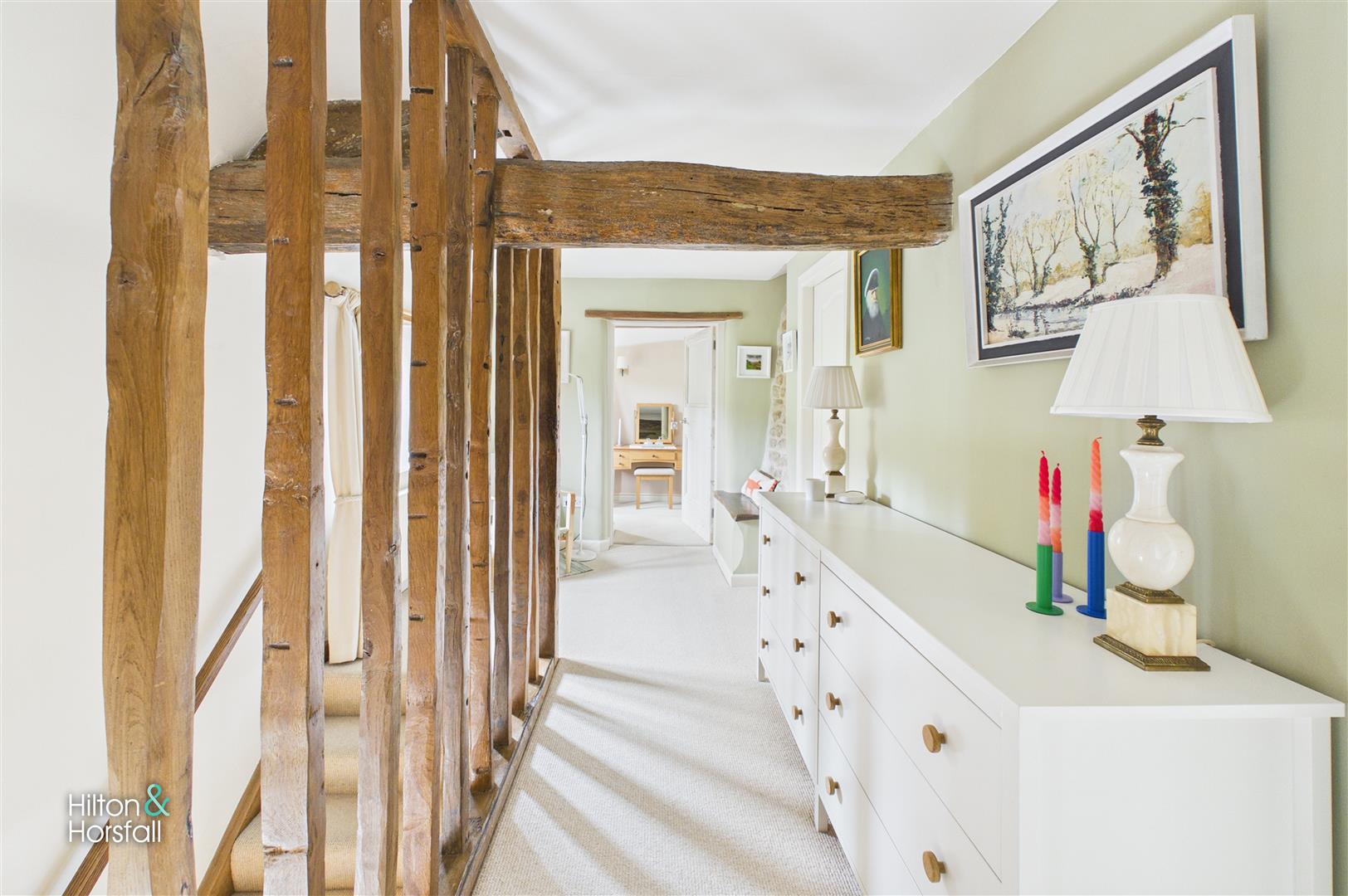 A spacious and characterful first floor landing featuring impressive exposed timber beams which add to the charm and character of the home. The landing provides access to the bedrooms and bathroom and benefits from a window allowing natural light into the space while enjoying pleasant outlooks.