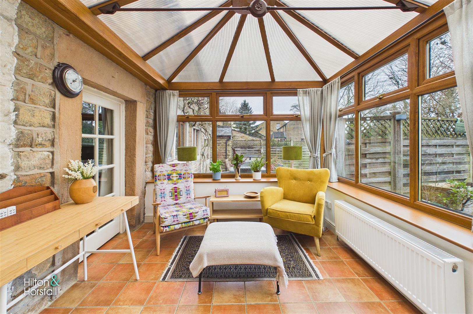 A lovely light-filled garden room enjoying views over the rear garden. Featuring a vaulted ceiling with exposed timber framework and a glazed surround, the space is filled with natural light creating a relaxing place to sit and unwind. Tiled flooring runs throughout and double doors provide access out to the rear parking area, with internal access leading through to both the dining kitchen and laundry room.