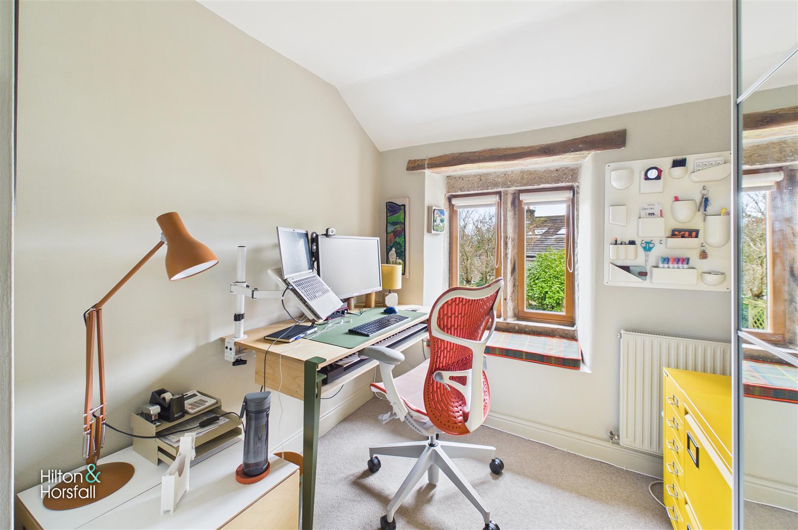 A well-proportioned bedroom currently utilised as a home office. The room benefits from a window to the rear elevation set within a stone surround allowing natural light into the space, while exposed timber detailing adds character. A versatile room that could be used as a bedroom, study or hobby room depending on requirements.