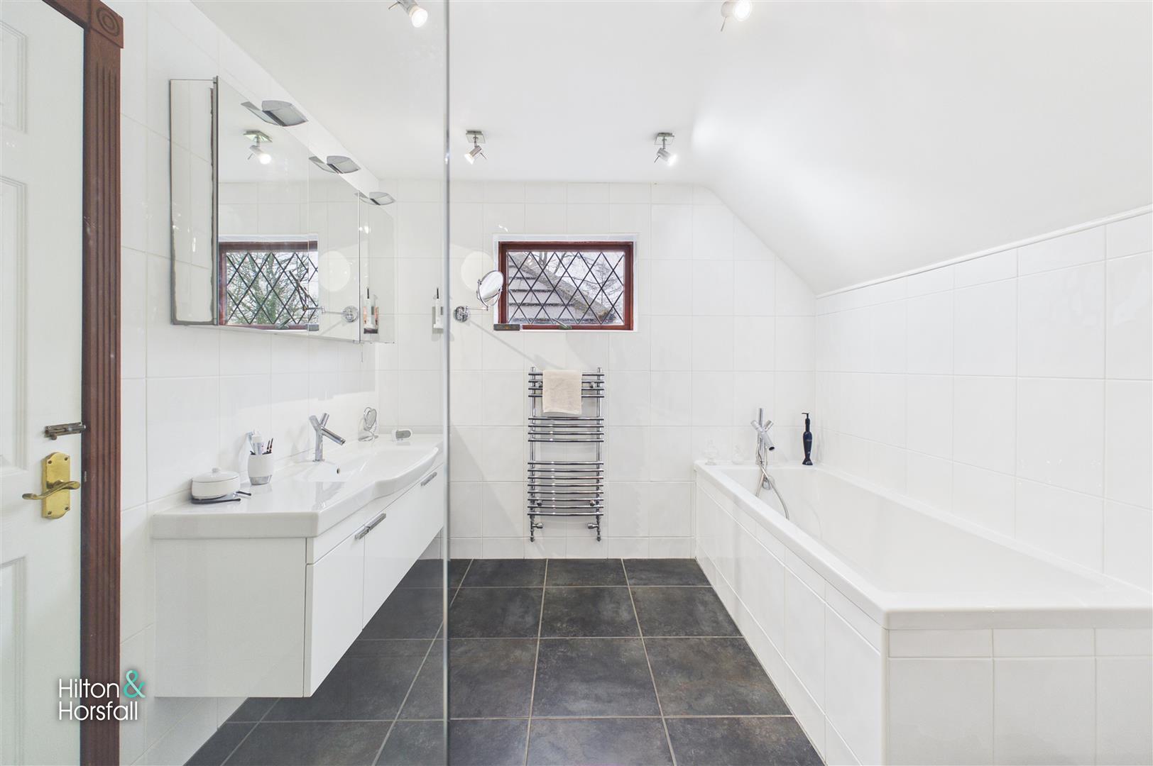 Stylishly presented and finished with contemporary tiling, the ground floor WC is fitted with a modern two-piece suite comprising a low-level WC and wash basin. Clean lines and neutral tones create a sleek and well-appointed space, ideally positioned to service the ground floor living accommodation.