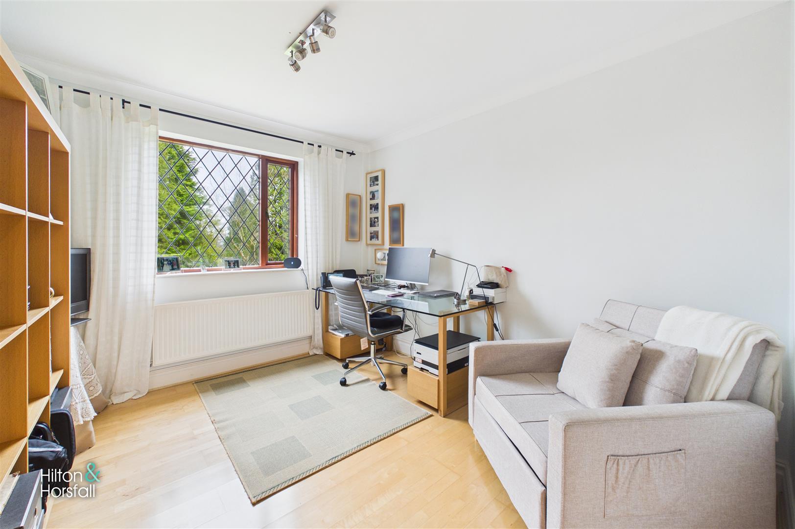 Positioned to the front of the property, this well-proportioned and versatile room is currently utilised as a study, offering an ideal environment for a quiet retreat. A large window allows for excellent natural light while enjoying pleasant outlooks, and the neutral décor and timber flooring enhance the bright, clean aesthetic. The flexibility of the space lends itself equally well to use as a sitting room, snug, playroom, or additional reception area depending on individual requirements.
